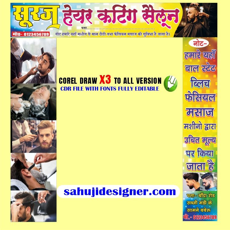 Latest And Best Hair Cutting Sailoon Banner Design cdr file with font