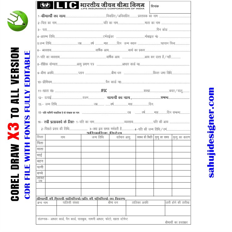 Latest And Best Lic Form Design CDR FileLatest And Best Lic Form Design CDR File