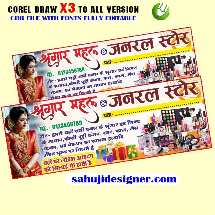 Latest and Best shringar & Janral Store Mahal Banner Design CDR File with font