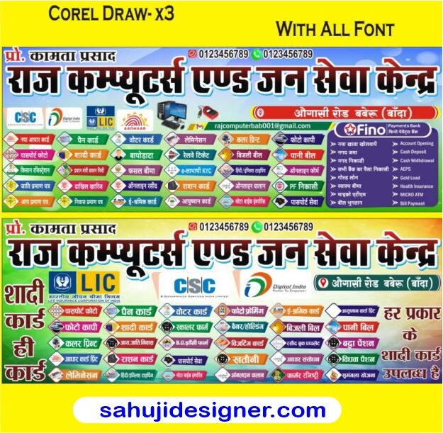 • Letest New CSC Janseva Kendra Computer Shop Flex banner Design cdr file with font