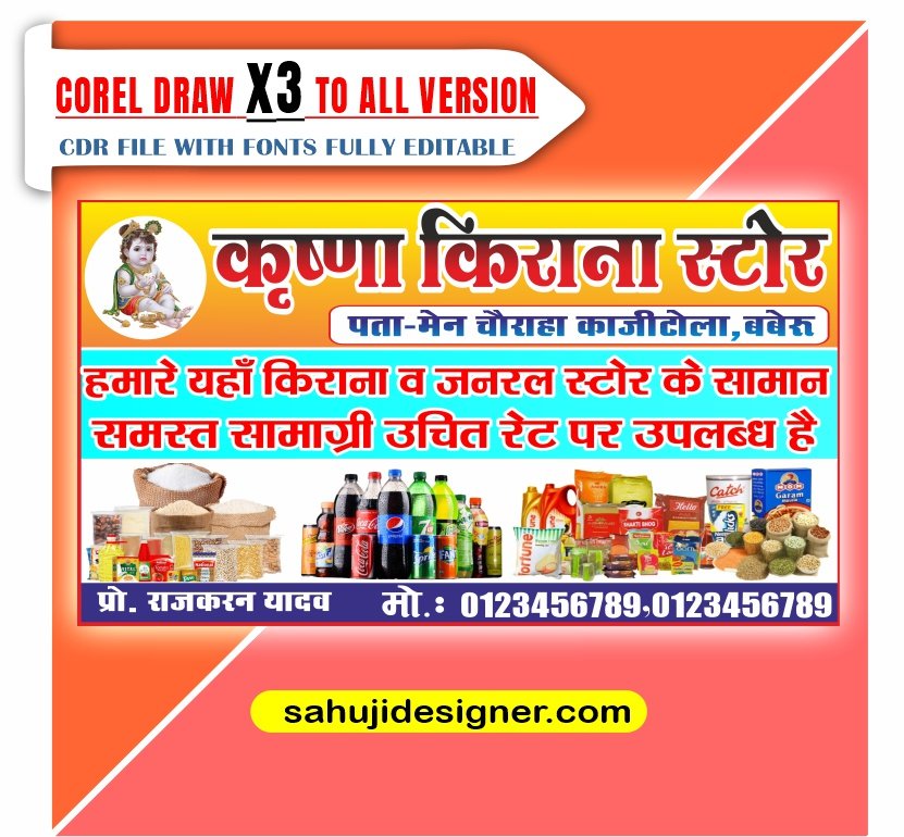 To help you get started, we’re providing a free CDR (CorelDRAW) file for a generic Kirana general store banner design. Here’s how you can use it: