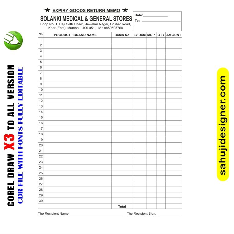 Letest New Medical rasid book Design CDR File with font