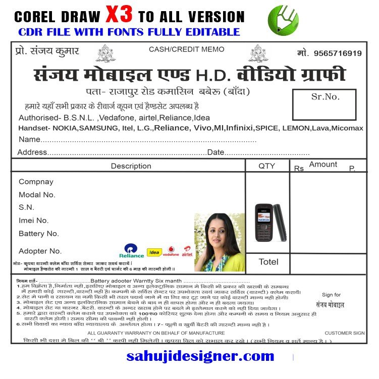 Letest New mobile rasid book Design CDR File with font